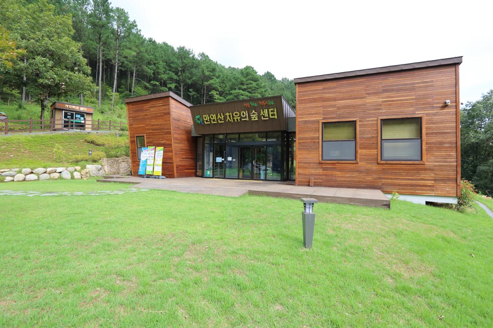 The beautiful healing forest of Manyeonsan wakes up a sense of ‘sight', and the scent of fresh grass and the sweet floral scent awakens ‘smell'. And the clear and clean water and wind sound touches ‘hearing', a cup of fragrant tea in relaxation wakes up the ‘taste', and warm sunlight showing through the forests arouses ‘touch'